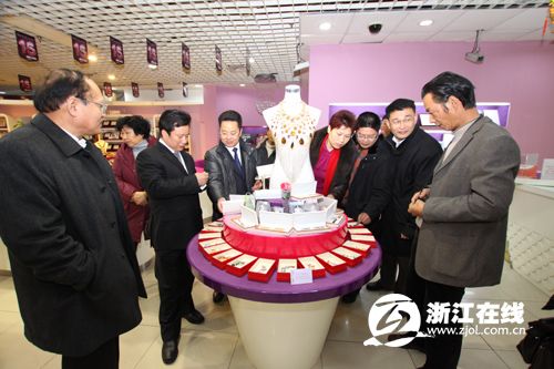 義烏(wū)市委書記黃誌平(左二)成為(wéi)商城首批客人