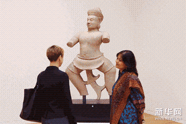 一個10世紀砂岩(yán)製的東(dōng)南亞雕像在美國紐約蘇富比2011年亞洲藝術周拍賣預展上展出