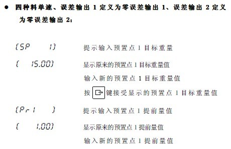 兩種料雙(shuāng)速、誤差輸出1 定義為預置點允(yǔn)差輸出1、誤(wù)差輸出2定義為預置點允差(chà)輸出2: