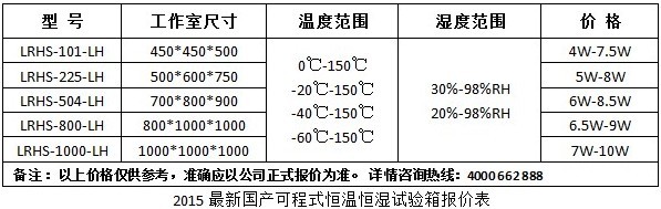 設備要(yào)求:在選型(xíng)時,客戶應至(zhì)少明確設備的尺寸大小、溫度範圍、濕度範圍。根據這三方麵可選擇標準的可程式恒溫恒(héng)濕試驗箱。若試驗產品有負載,很重,需要(yào)帶電測試,是造成價格差異的因素,應提前跟供應商說明。